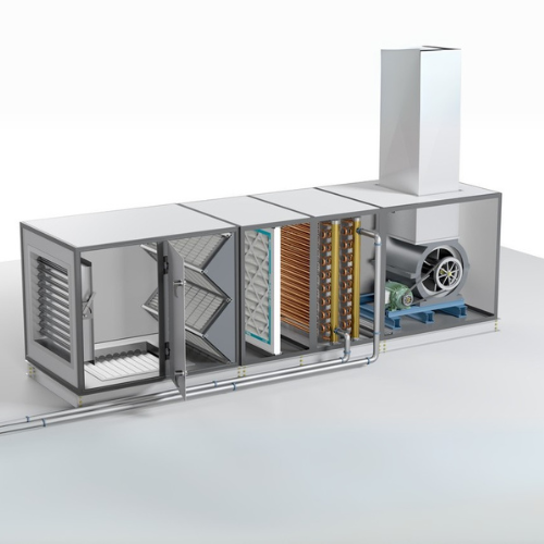 The AHU works by drawing in both outdoor and indoor air, filtering out dust, pollutants, and particles, and then adjusting the air’s temperature and humidity as needed. Once conditioned, the air is distributed through a network of ducts to different areas of the building, delivering clean, fresh, and climate-controlled air to occupants.